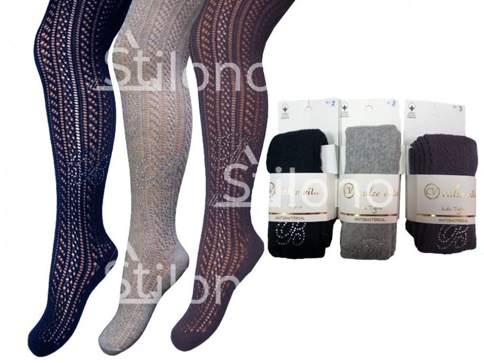 Однотонные ажурные колготки со стразами - отличное решение для торжественных случаев и на каждый день. Изделия бренда CALZE VITA  красиво смотрятся на ножке, хорошо держат форму, сохраняют эластичность и цвет после многократных стирок